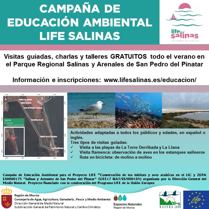 Este viernes 2 de julio arranca la campaña de educación ambiental del Proyecto LIFE Salinas, organizada por la Dirección General del Medio Natural y en colaboración con el Ayuntamiento de San Pedro del Pinatar.